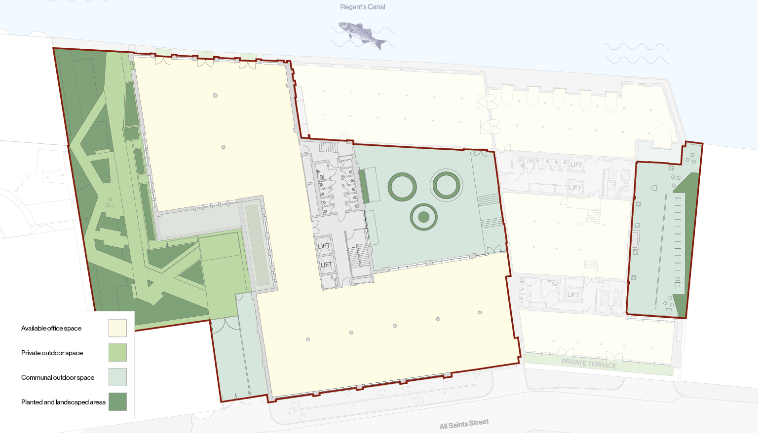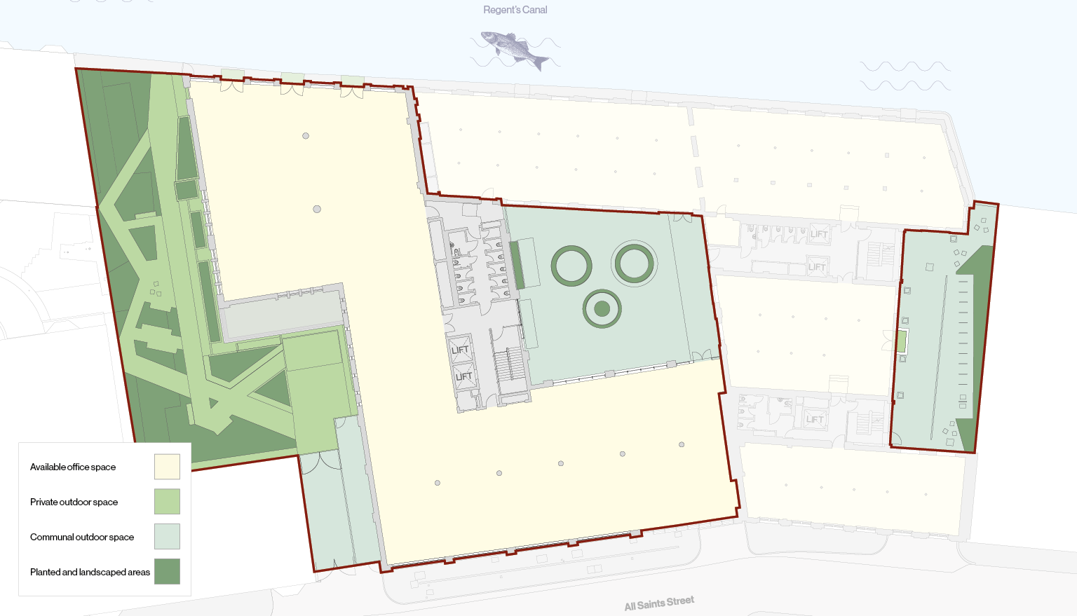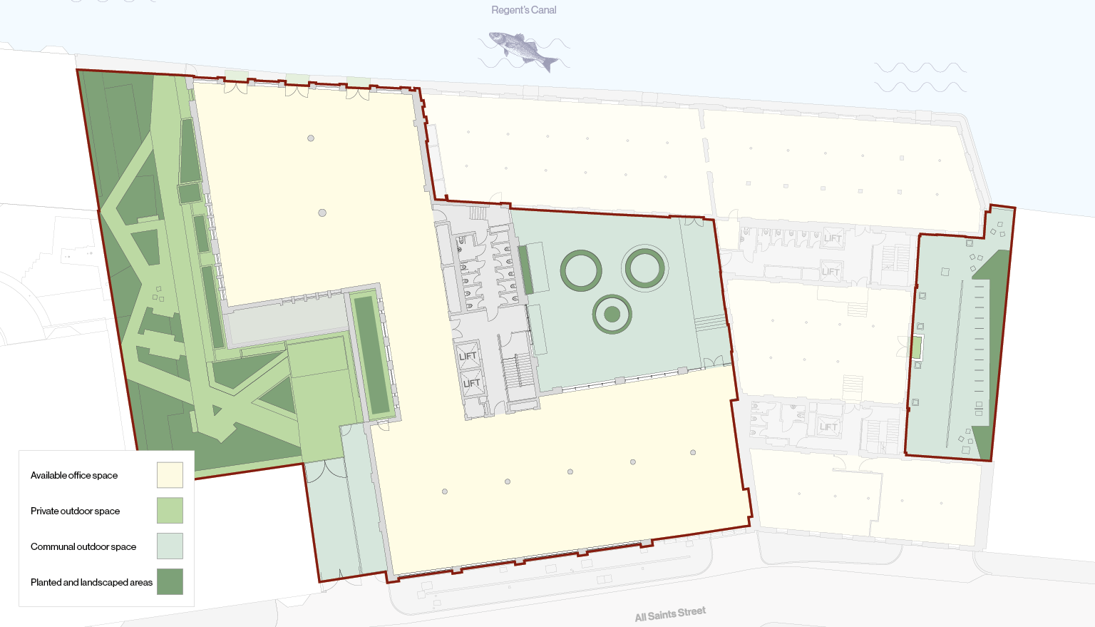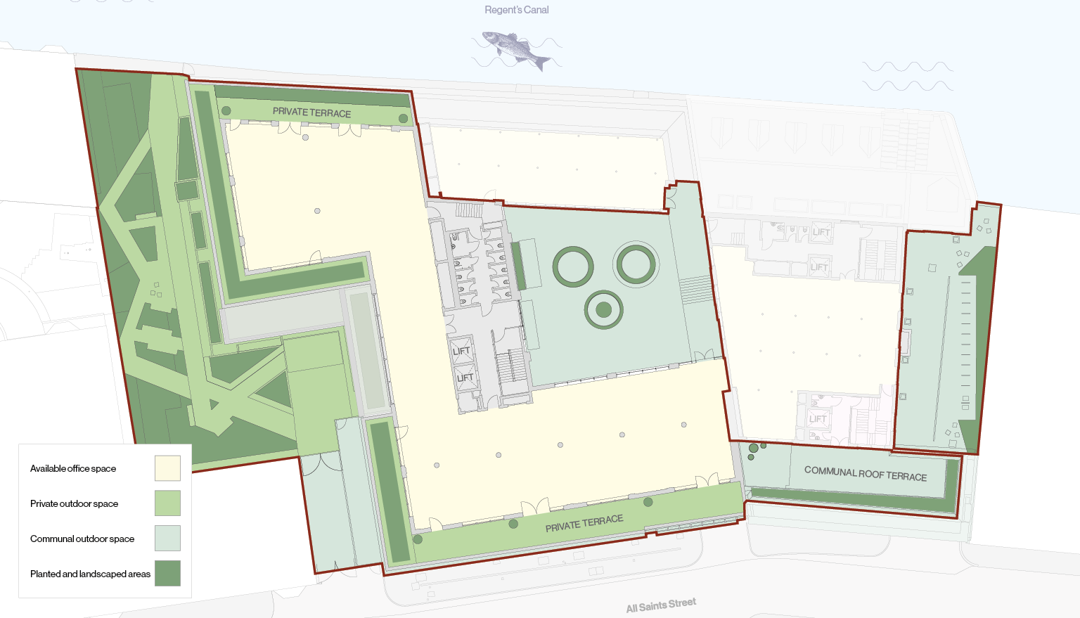 Large open floors with floor to ceiling windows, up to 3.5m ceiling height, natural daylight and greenery from all aspects.